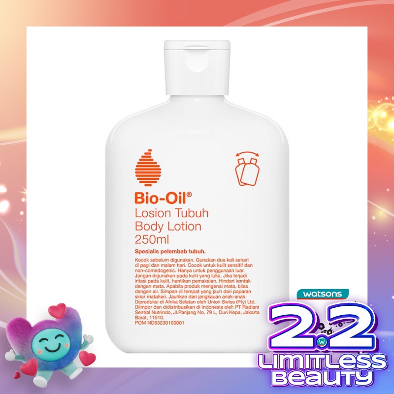 Bio-Oil® Body Lotion pelopor pelembap tubuh yang efektif dengan tekstur yang ringan. Produk ini jauh lebih ringan dibandingkan dengan lotion tubuh lain, namun memiliki kandungan minyak tinggi sebesar 42%. Kombinasi unik antara kelembutan ultra-ringan dan kandungan minyak yang tinggi ini dapat terwujud berkat formulasi inovatif 'kocok sebelum digunakan' dari Bio-Oil.