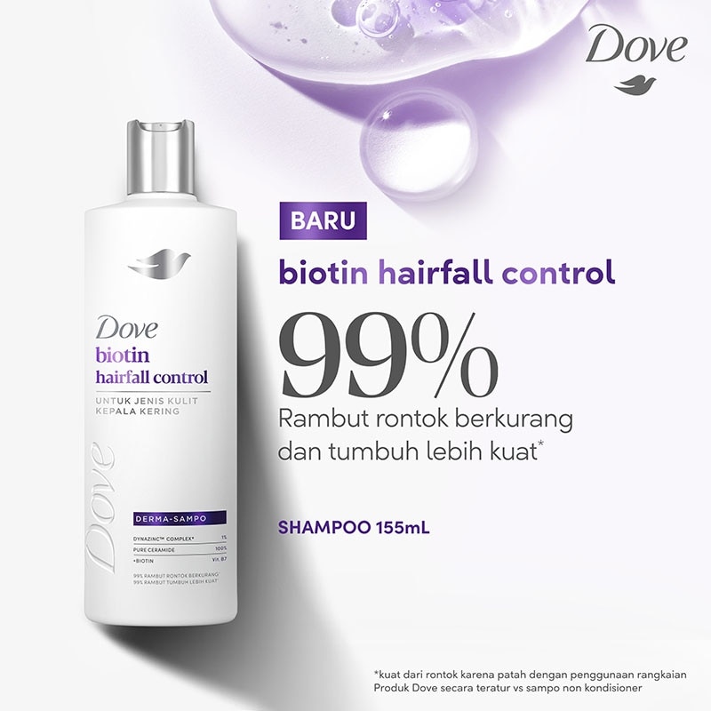 Dove Biotin Hairfall Control Shampoo adalah solusi terbaru dari Dove untuk kamu yang mengalami rambut rontok akibat akar lemah dan kulit kepala kering. Dove memahami bahwa 80% kerontokan rambut terjadi di kulit kepala, bukan hanya di batang rambut. Karena itu, Dove menghadirkan formula berbasis teknologi skincare yang bekerja langsung di kulit kepala untuk mengatasi sumber utama kerontokan.