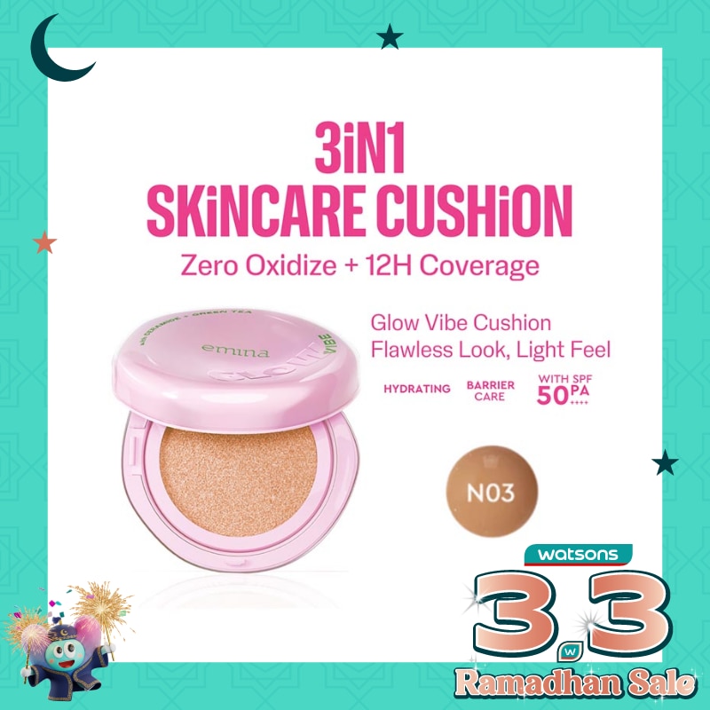 Emina Glow Vibe Cushion menawarkan hasil akhir dewy yang fresh dan glowing. Diformulasikan dengan ceramide untuk menjaga skin barrier dan green tea untuk hidrasi serta efek menenangkan, cushion ini dilengkapi SPF 50 PA++++ dan memberikan 12-hour seamless glow, ideal untuk kulit normal hingga kering.