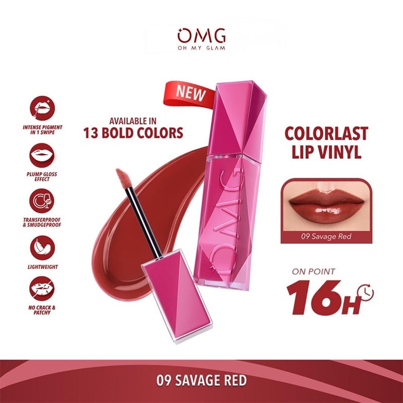 OMG Oh My Glam Colorlast Lip Vinyl 09 Savage Red 2.5g
