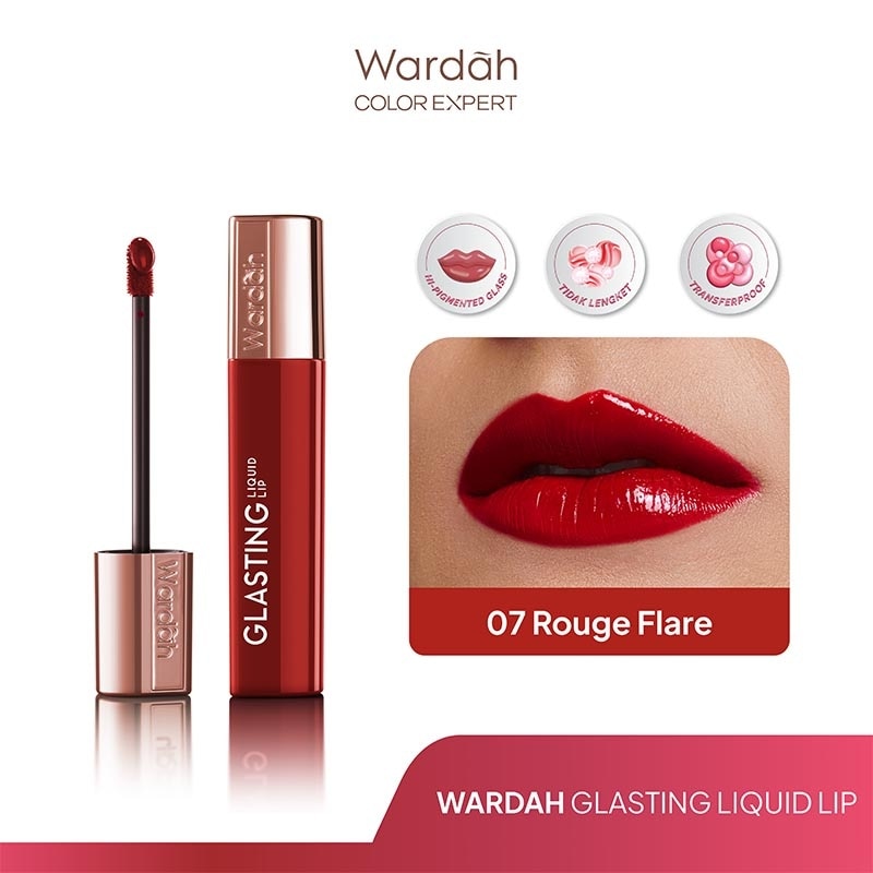 Wardah Glasting Liquid Lip 07 Rouge Flare 3.5 g - Hi-Pigmented Glass Color, Ringan, Tidak Lengket, Transferproof