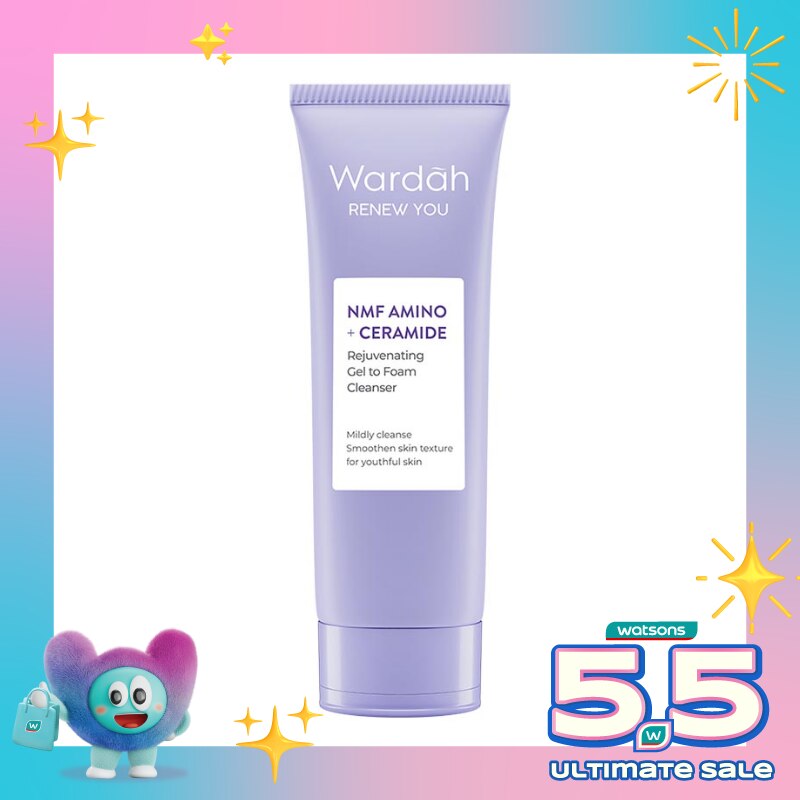 Memperkenalkan Wardah Renew You Rejuvenating Gel to Foam Cleanser, face wash dengan Acid Mantle ExpertTM Technology yang diformulasikan dengan NMF Amino, inovasi terbaru Amino dari Wardah yang dikombinasikan dengan NMF (Natural Moisturizing Factors) yang membantu menjaga pertahanan acid mantle sebagai garda terdepan skin barrier-mu. Kandungan NMF Amino dan Ceramide membersihkan dengan lembut dan menjadikan kulit lebih halus. Wardah Renew You face wash cocok digunakan untuk semua tipe kulit.
