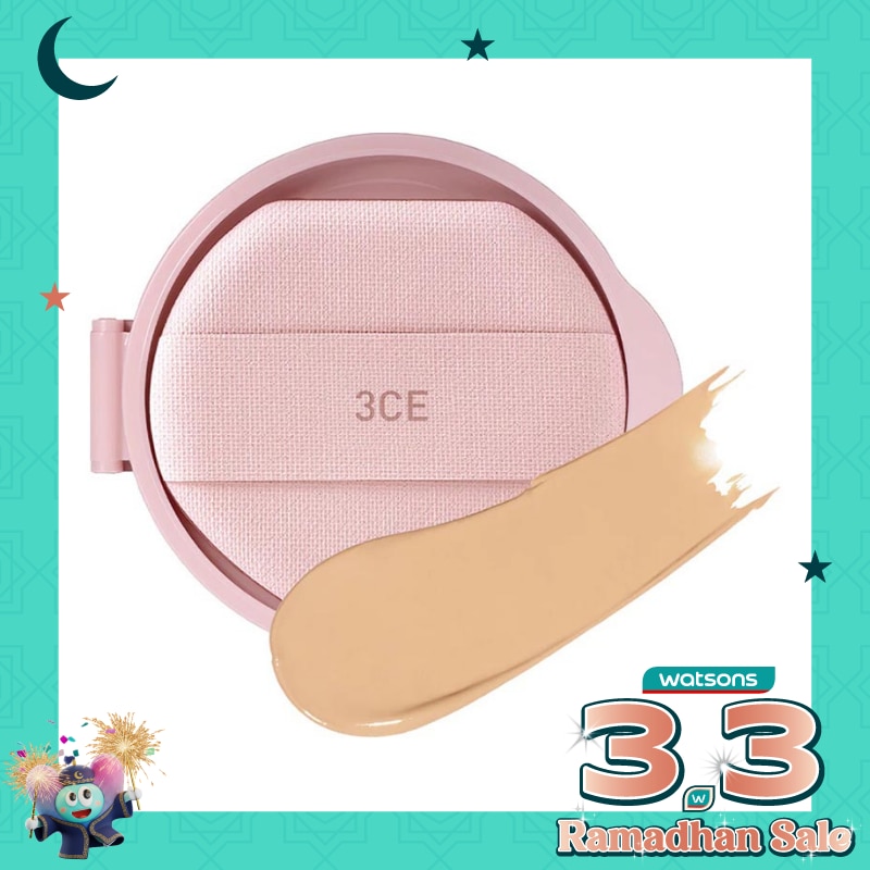 Nikmati kulit cerah dan glowing yang PEARL-fect sepanjang hari dengan cushion foundation inovatif dari 3CE. Dengan teknologi 3CE Super Pearl yang unik dan adaptif dengan efek warna yang berubah dari kuning ke pink hingga violet membuat kulit tampak lebih cerah, merata, dan sehat secara alami.