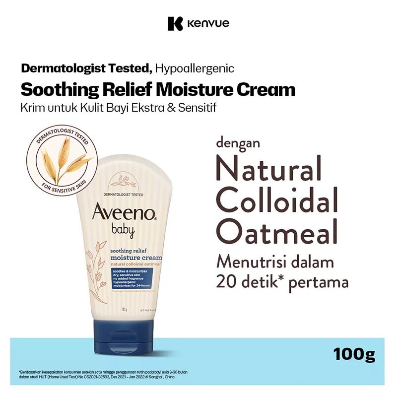 Aveeno® Baby Soothing Relief Moisture Cream dengan Natural Colloidal Oatmeal, melembapkan dan menenangkan kulit bayi yang kering dan sensitif. Dermatologist tested dan teruji klinis melembapkan kulit bayi hingga 24 jam.