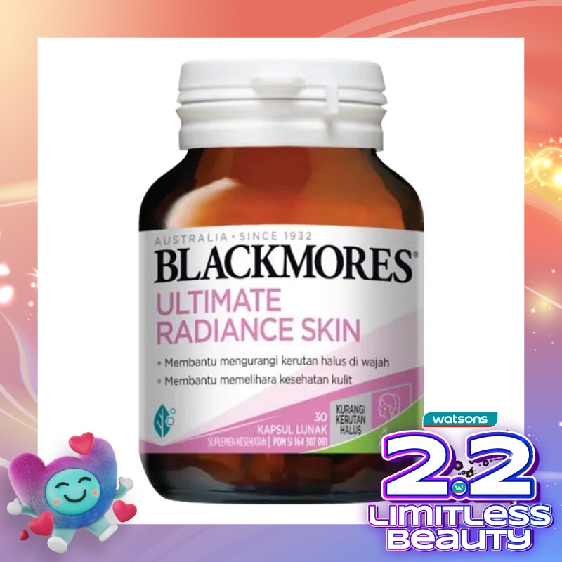 Blackmores Ultimate Radiance Skin merupakan suplemen kulit yang mengandung Kolagen, Vitamin E, Ekstrak Teh Hijau dan bahan lainnya yang membantu memelihara kesehatan kulit dari dalam.