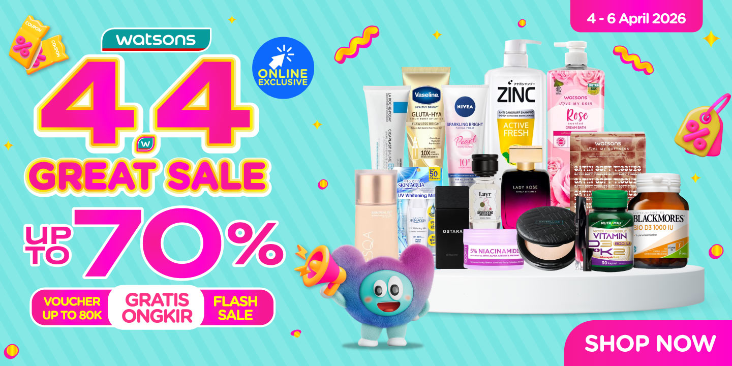 Berlangsung tanggal 4–6 April 2026, Watsons 4.4 Great Sale hadir buat kamu yang mau “balik ke rutinitas” tanpa bikin kantong menjerit.