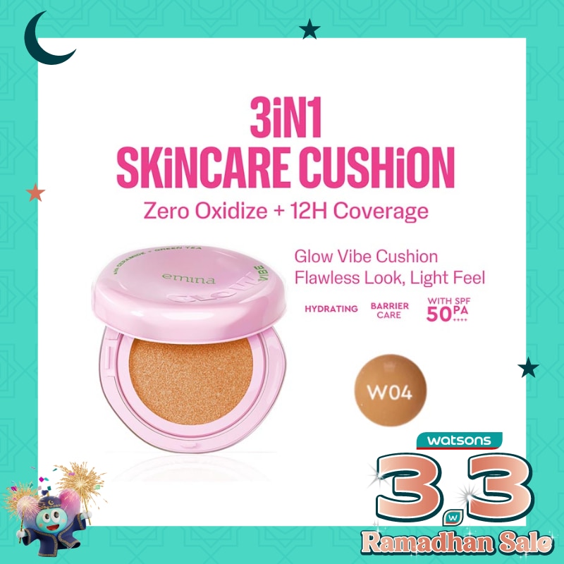Emina Glow Vibe Cushion menawarkan hasil akhir dewy yang fresh dan glowing. Diformulasikan dengan ceramide untuk menjaga skin barrier dan green tea untuk hidrasi serta efek menenangkan, cushion ini dilengkapi SPF 50 PA++++ dan memberikan 12-hour seamless glow, ideal untuk kulit normal hingga kering.