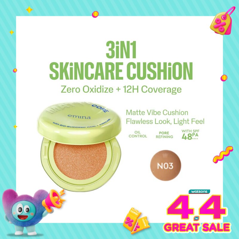 Emina Matte Core Cushion memberikan hasil akhir matte yang halus dan natural tanpa kesan kering. Dilengkapi teknologi 12-hour breathable matte dan SPF 48 PA+++, cushion ini mengandung Azeclear untuk mengontrol minyak serta bio-succinic acid untuk membantu menyamarkan pori, cocok untuk kulit berminyak atau kombinasi.