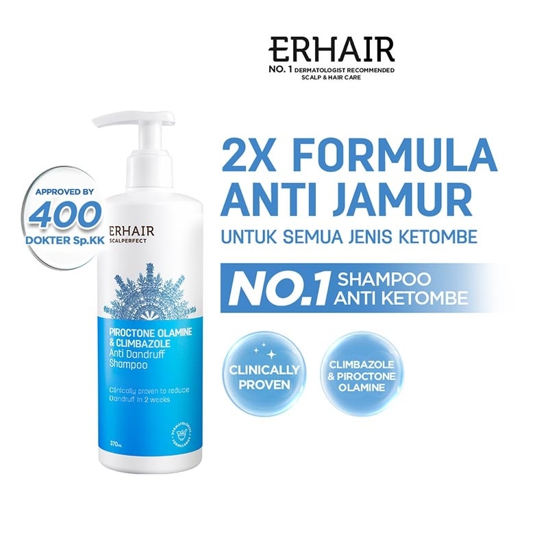 Piroctone Olamine & Climbazole: Dual-Actives Anti Dandruff yang bekerja efektif mengatasi ketombe hingga dermatitis seboroik ringan.