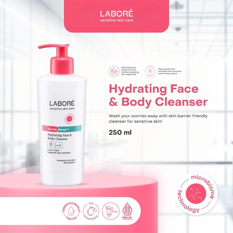 Labore GentleBiome Hydrating Face & Body Cleanser 250 ml - Body Wash - Sabun Mandi - Pembersih Muka dan Tubuh untuk Kulit Sensitive dengan Kandungan Advanced