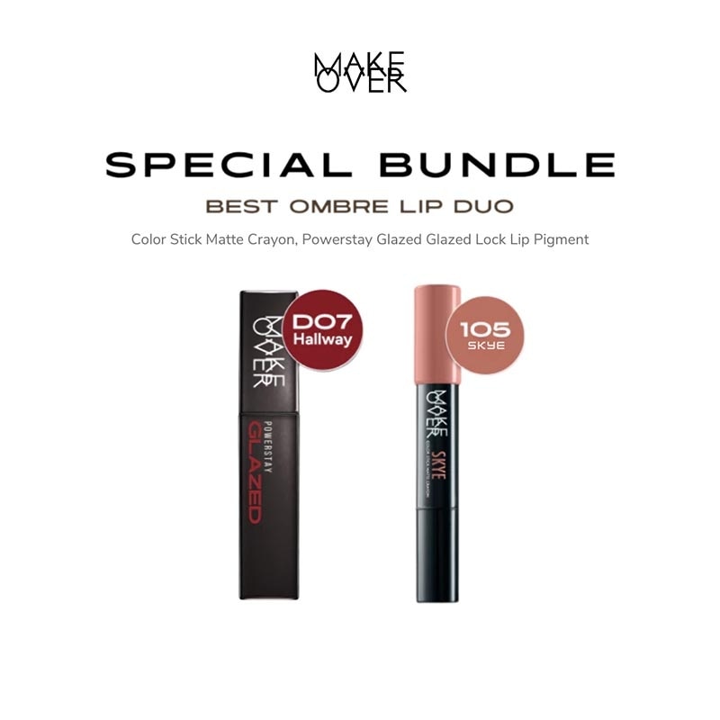 Make Over Gorgeous Lips Bundle: Glazed Lock Lip Pigment + Color Stick Matte Crayon 105 Skye