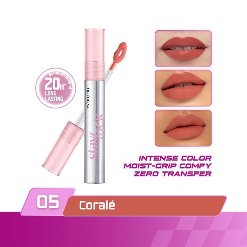 Wardah Staylock Lip Matte 05 Coralè 2.7g - 20H+ Long lasting Lip Cream, Real Life Approved! - Lip Matte Ringan Nyaman Smooth Long Lasting - Foodproof Waterproof Transferproof - Matte Intense - Tahan Lama Hingga 20 jam