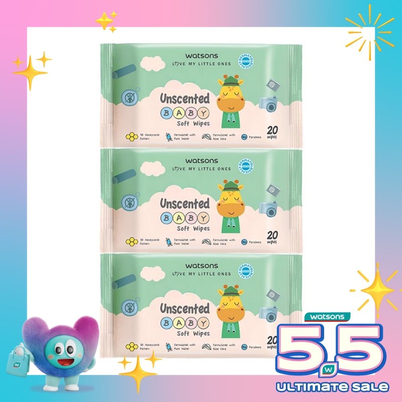 Watsons Unscented Baby Soft Wipes 20'S X 3